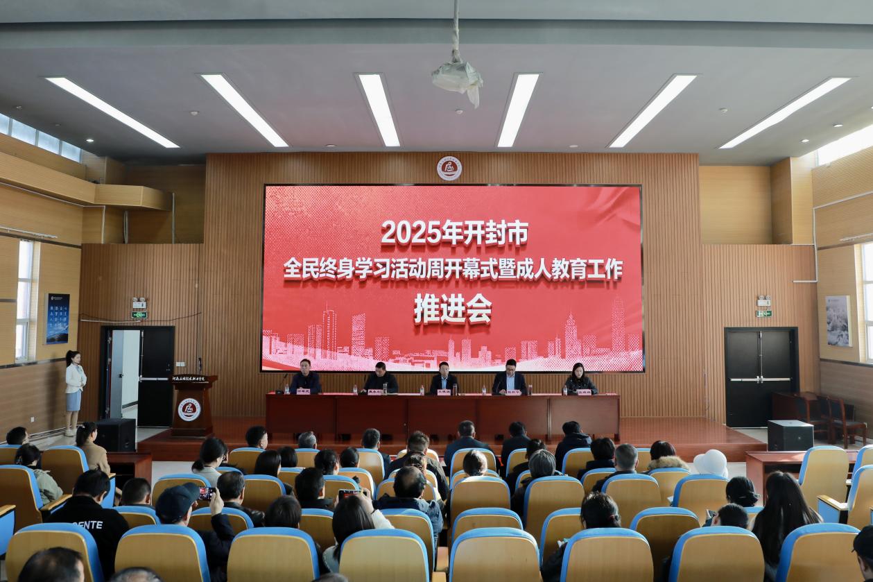 2025年11月21日上午,开封市2025全民终身学习活动周开幕式暨成人教育工作推进会在我校开封校区南院举行。开封市教育体育局二级调研员王晓波,职教科科长禹永利,党委副书记、开封校区管委会主任魏新华出席会议,开封市各县区教育体育局相关负责人、成人教育工作骨干参加会议,会议由开封市教育科学研究院成人教育研究部主任张玮玮主持。