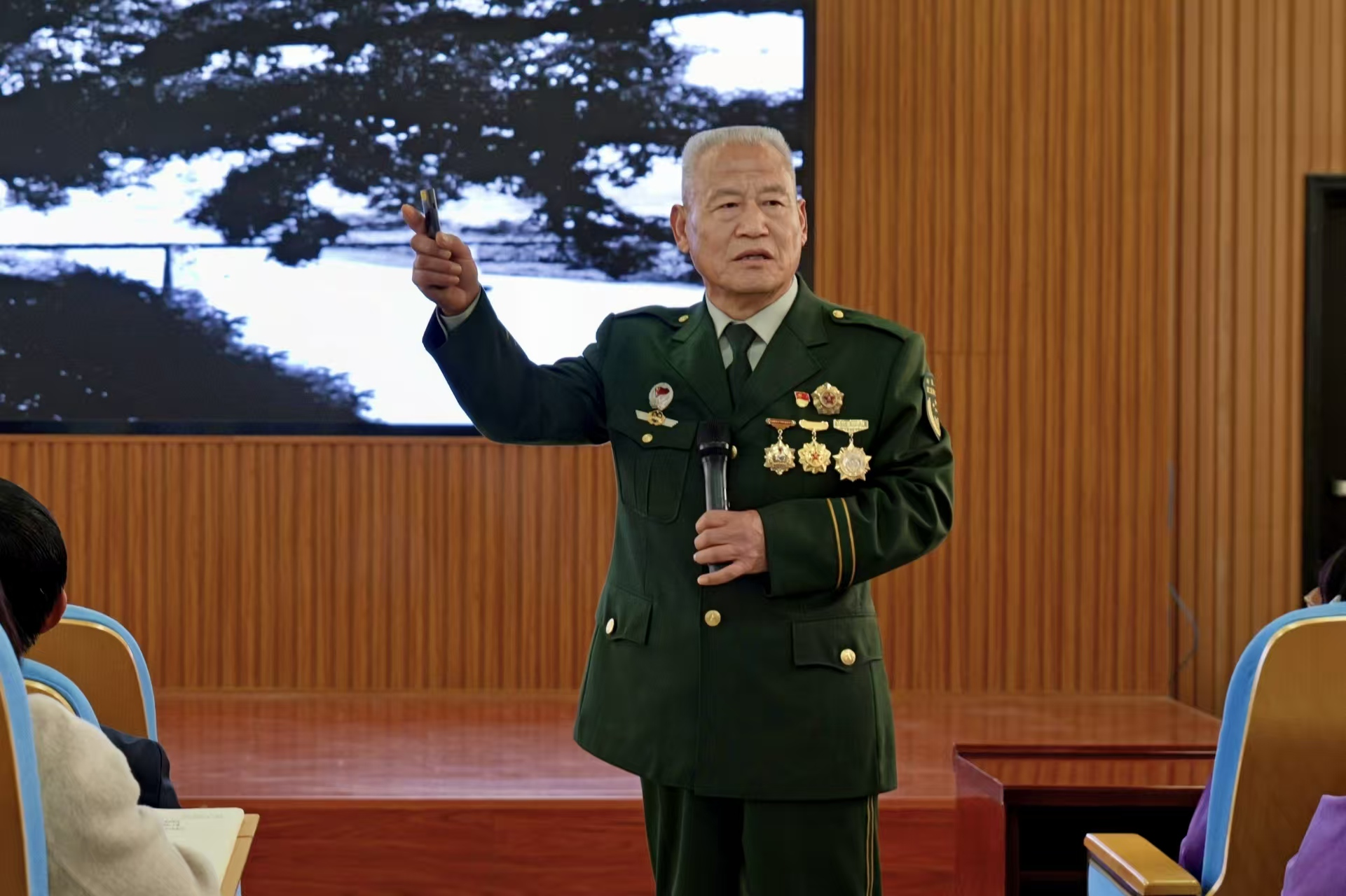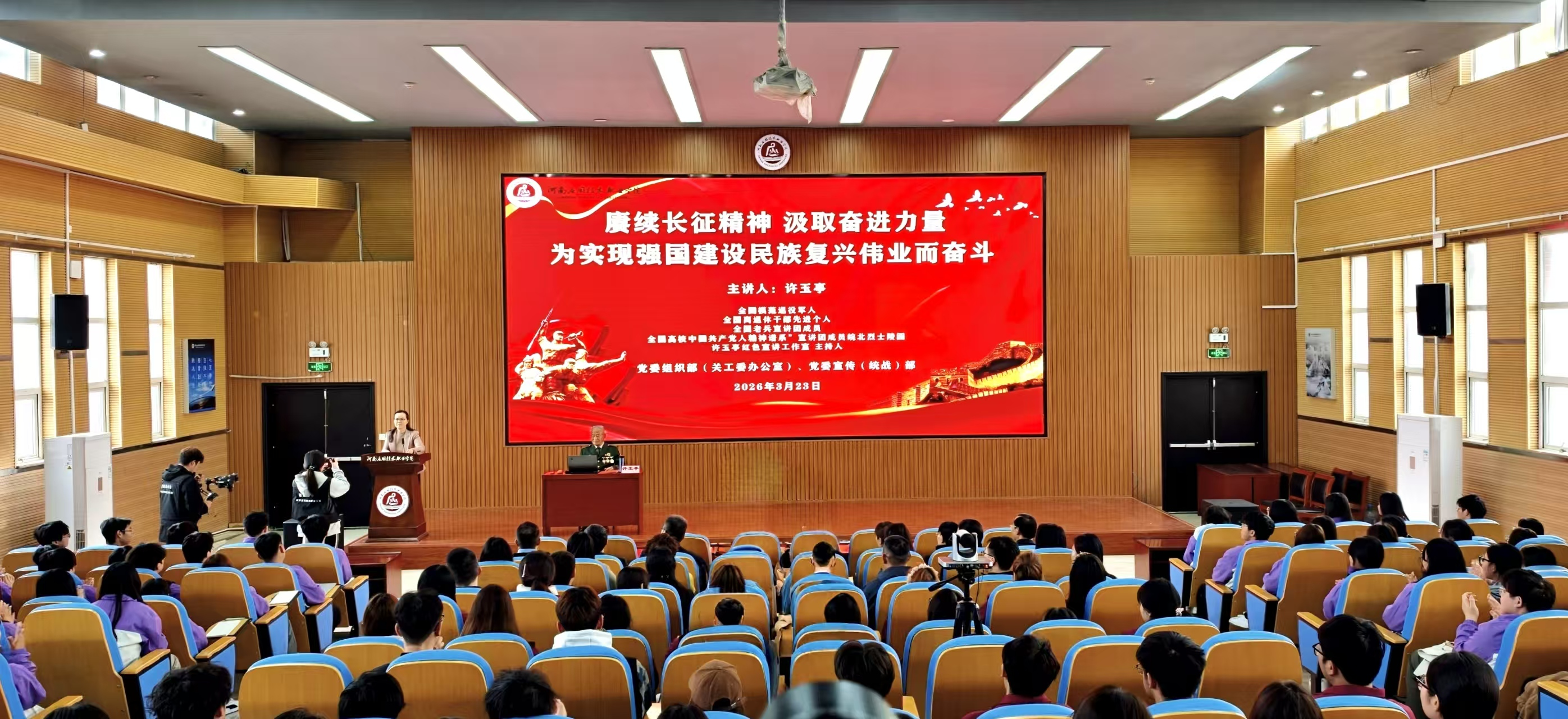 宣讲中,许玉亭以《赓续长征精神,汲取奋进力量,为实现强国建设、民族复兴伟业而奋斗》为题,结合自身深耕红色宣讲的实践积累与深刻体悟,系统回顾了红军长征的壮阔历史进程,生动再现了革命先辈坚定执着的理想信念、不怕任何艰难险阻、不惜付出一切的英雄气概,深刻诠释了中国共产党人同人民群众生死相依、患难与共、艰苦奋斗的优良作风,全面解读了伟大长征精神的丰富内涵与跨越时空的永恒价值。整场宣讲史料详实、情感真挚、催人奋进,深深打动了在场的每一位师生。